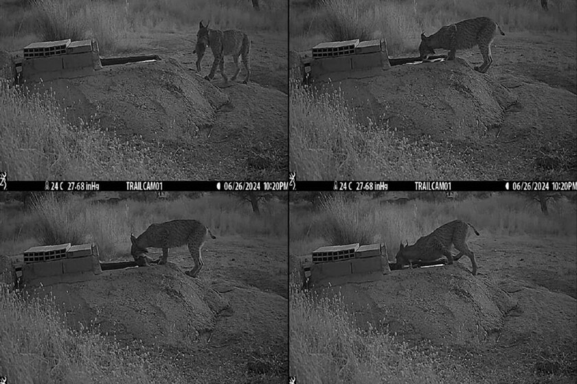 ¿Qué ha pasado? Como decía, un equipo liderado por el IREC ha usado cámaras de trampeo para documentar por primera vez cómo hembras de lince ibérico sumergen deliberadamente conejos recién cazados en pilones de agua antes de darselos a sus crías.