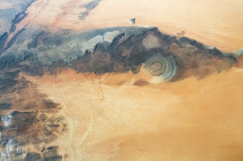 Es una especie de ojo gigante que mira al cielo grabado en la roca del Sáhara se llama en realidad Estructura de Richat. Como cuenta el astronauta francés Thomas Pesquet, casi todos los astronautas le han hecho alguna foto desde el espacio simple y llanamente porque no tiene pérdida. La enciclopedia Britannica asegura que los pilotos de la Segunda Guerra Mundial lo usaban como punto de referencia.