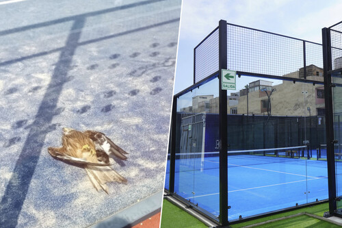 ¿El motivo? Muchas de esas pistas deportivas están rodeadas de cristaleras, grandes láminas transparentes que se convierten en trampas mortales cuando un mirlo, golondrina, abubilla, milano… impacta contra ellas en pleno vuelo y a gran velocidad. No es algo exactamente nuevo. Lleva años ocurriendo con ventanales y edificios acristalados, además de con las barreras acústicas de las carreteras. Lo que sí resulta novedoso es que a la lista se añadan las pistas de pádel.