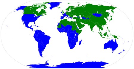 Sin ir más lejos, el mapa que ves bajo estas líneas y coronando el artículo es de Wikimedia: en verde, los estados que se quitan los zapatos al llegar a casa y en azul, los que no. Tendemos a asociar este hábito a Japón y aunque probablemente sea el país más conocido donde se aplica, no es el único. Esencialmente casi toda Asia se quita los zapatos, también el norte de África y Canadá.