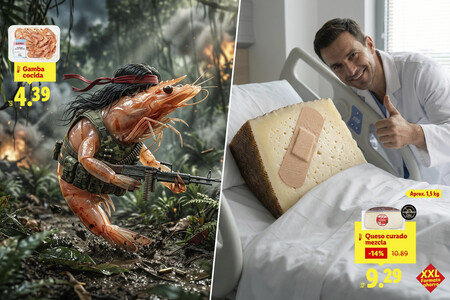 Para entenderlo tenemos que remontarnos a este lunes, cuando Lidl decidió publicitar a través de su cuenta de X sus bandejas de gambas cocidas. Hasta ahí nada excepcional ni sorprendente. Lo curioso es cómo lo hizo. En vez de mostrar la bandeja sin más con el precio, la cadena germana tiró de imaginación y publicó lo que parece una ilustración elaborada con IA en la que se ve un langostino sosteniendo una metralleta, con chaleco, melena y una cinta roja.